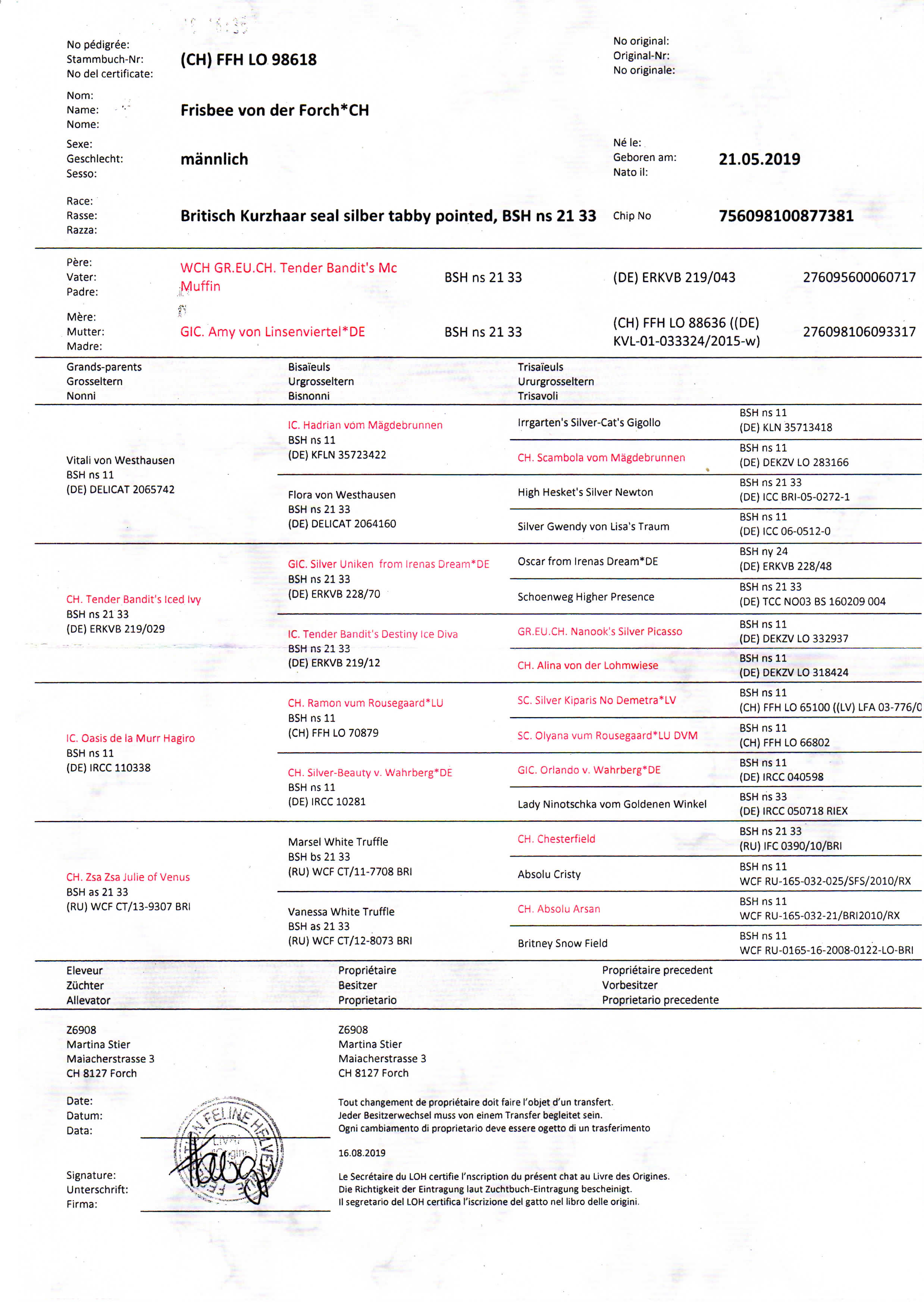 Frisbee von der ForchFrisbee von der ForchFrisbee von der Forch, Stammbaum